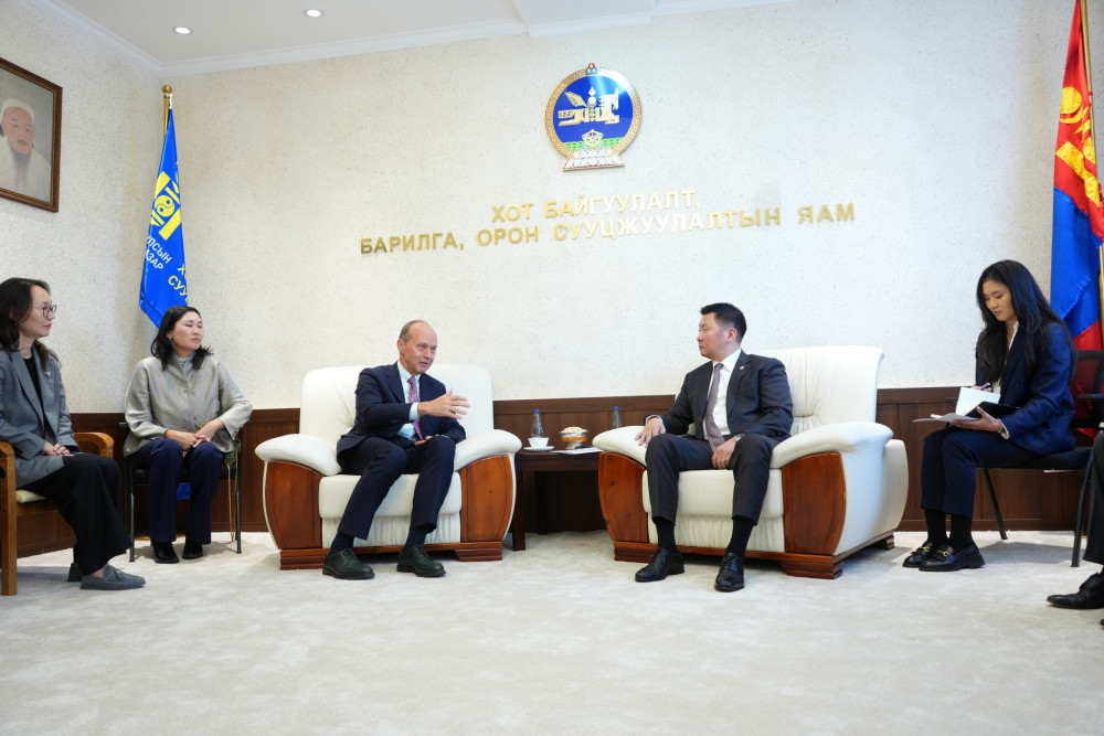 Хот байгуулалт, барилга, орон сууцжуулалтын сайд Э.Бат-Амгалан Дэлхийн ногоон барилгын зөвлөлийн (World Green Building Council) Европ, Төв Азийн бүсийг хариуцсан дэд ерөнхийлөгч Ричард Тейхманныг хүлээн авч уулзлаа.